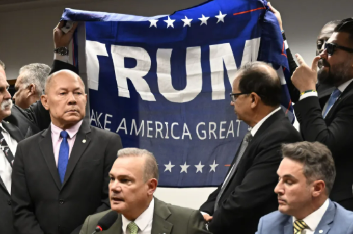 Em manifestações na Câmara, parlamentares bolsonaristas chegaram a hastear a bandeira dos Estados Unidos, num gesto que provocou críticas dentro e fora do Congresso, principalmente pela incoerência entre o discurso nacionalista e a subserviência a decisões externas que afetam diretamente empresas, exportadores e empregos brasileiros.
