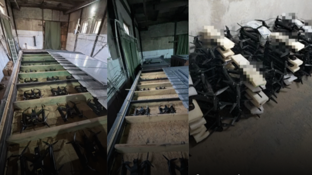 As imagens, compartilhadas com a agência Reuters, mostram dezenas de drones quadricópteros de curto alcance, posicionados dentro de uma instalação industrial e também armazenados em galpões adaptados para lançamentos automáticos.