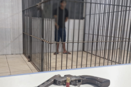 Adolescente de 17 anos foi flagrado por equipe da PM momentos antes de anunciar o crime; ele tentou fugir e dispensar a arma, mas foi capturado. Um adolescente de 17 anos, conhecido pelo apelido de “F...