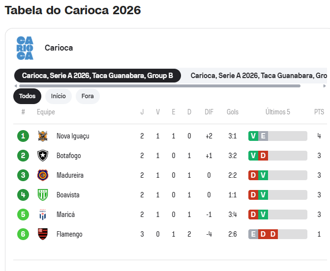 De acordo com o regulamento do Campeonato Carioca 2026, as duas piores equipes de cada grupo, aquelas que terminarem em quinto e sexto lugares, avançam para uma nova fase chamada Grupo X.