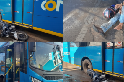 Motociclista escapa após moto ficar presa embaixo de ônibus em acidente na zona leste de Porto Velho