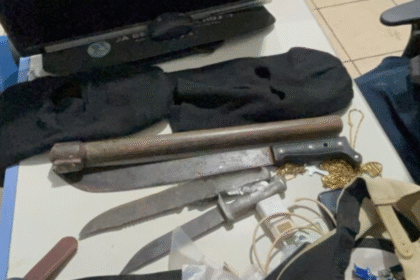 Durante revista no veículo foram encontradas duas facas, dois facões, uma machadinha e toucas ninjas (balaclavas). Uma ação rápida de policiais do 9° Batalhão, resultou na prisão do criminoso Ezequiel...