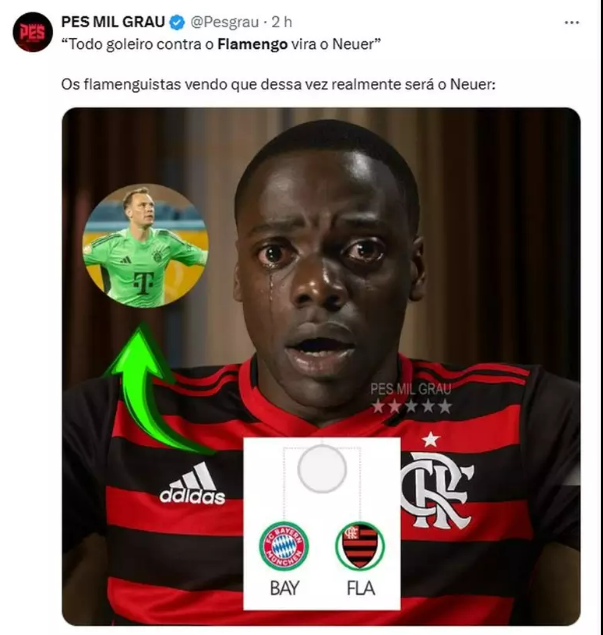 • A publicação do Bayern, com legenda ironizando o fenômeno “todo goleiro vira Neuer”, viralizou nas redes, provocando ainda mais os fãs do Flamengo.