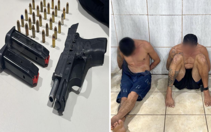 Durante a ação, os militares abordaram dois suspeitos. Um deles estava foragido da Justiça e possuía condenação por homicídio. Com ele, os policiais encontraram uma pistola calibre 380, municiada, o que elevou o grau de risco da ocorrência.