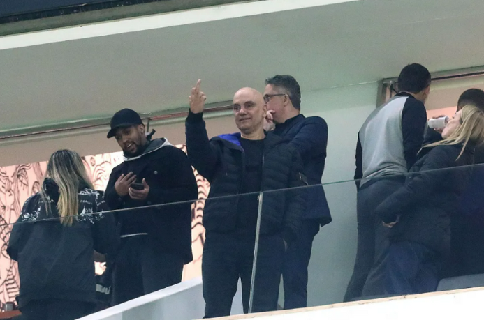 A noite que começou tensa em Brasília terminou com uma cena carregada de simbolismo em Itaquera. Horas depois de ser alvo de sanções impostas pelo governo dos Estados Unidos, o ministro Alexandre de Moraes, do STF (Supremo Tribunal Federal), apareceu em um camarote da Neo Química Arena para assistir ao jogo do time do coração. E em meio à vibração pela vitória do Corinthians sobre o Palmeiras, pela Copa do Brasil, fez um gesto obsceno com o dedo médio, que rapidamente ganhou repercussão nas redes sociais.