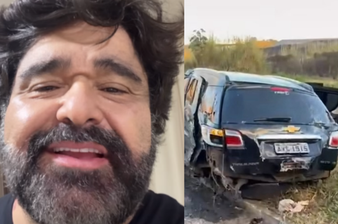 “Tivemos um livramento muito grande ali… Mas graças a Deus, apesar do carro ter acabado, nós estamos muito bem”, disse o cantor em vídeo publicado nos stories. Ele contou ainda que seu assistente, Heleno, teve apenas um pequeno corte na mão. “Mas ele está muito bem. Eu estou zerado.”