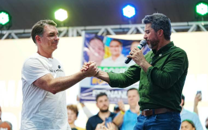 Flávio Bolsonaro também reforçou o apoio do grupo político e defendeu a união do campo conservador no estado.
