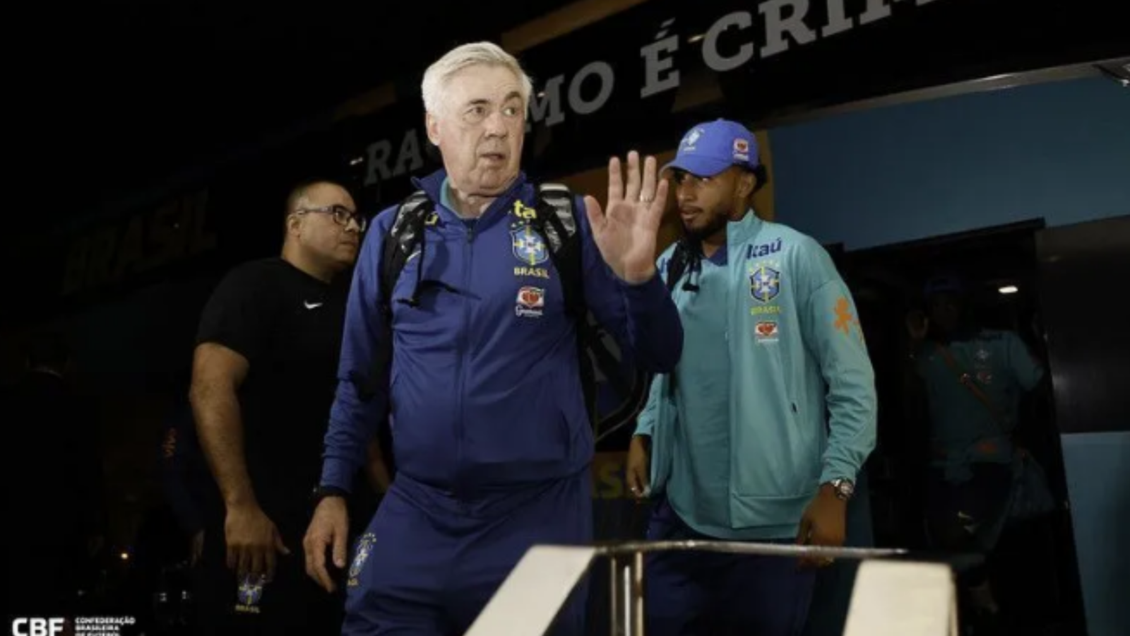 O desembarque da equipe aconteceu na madrugada desta quarta (4), marcando a primeira viagem internacional do técnico italiano com o elenco brasileiro. Antes da partida, Ancelotti concede uma coletiva de imprensa, às 12h45 (horário de Brasília), no hotel onde a delegação está hospedada.