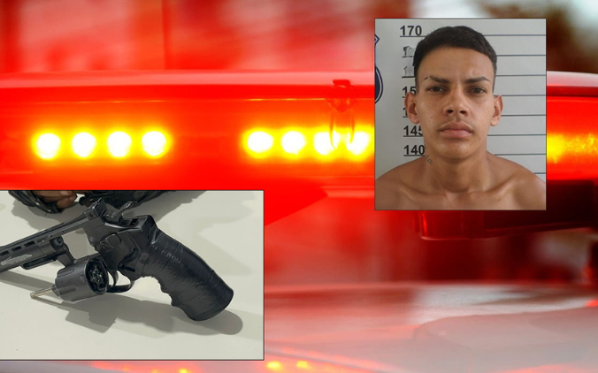 Com ele, os policiais apreenderam um simulacro de revólver tipo .38, com numeração raspada, além do iPhone 11 Pro Max roubado, reconhecido pela vítima.