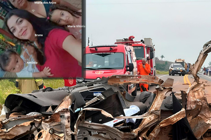 O acidente aconteceu quando a família retornava para casa, após viagem. O impacto da batida foi tão violento que destruiu a parte frontal do veículo e espalhou destroços pela rodovia.