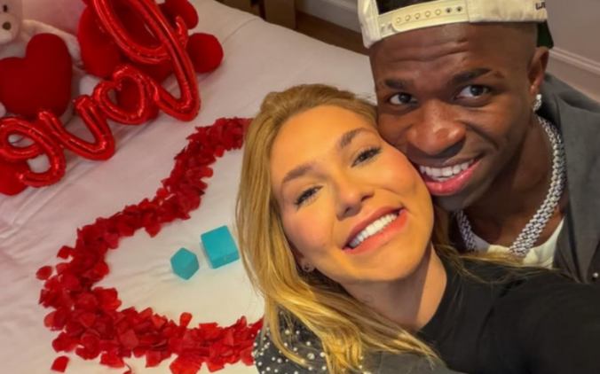 O atacante brasileiro Vinicius Júnior, do Real Madrid, e a influenciadora Virginia Fonseca oficializaram nesta terça-feira (28) o namoro. O anúncio foi feito pelas redes sociais, em um carrossel de fotos repleto de clima romântico, com balões de coração, pétalas de rosa e ursinhos de pelúcia, acompanhado da legenda “V❤️V”.